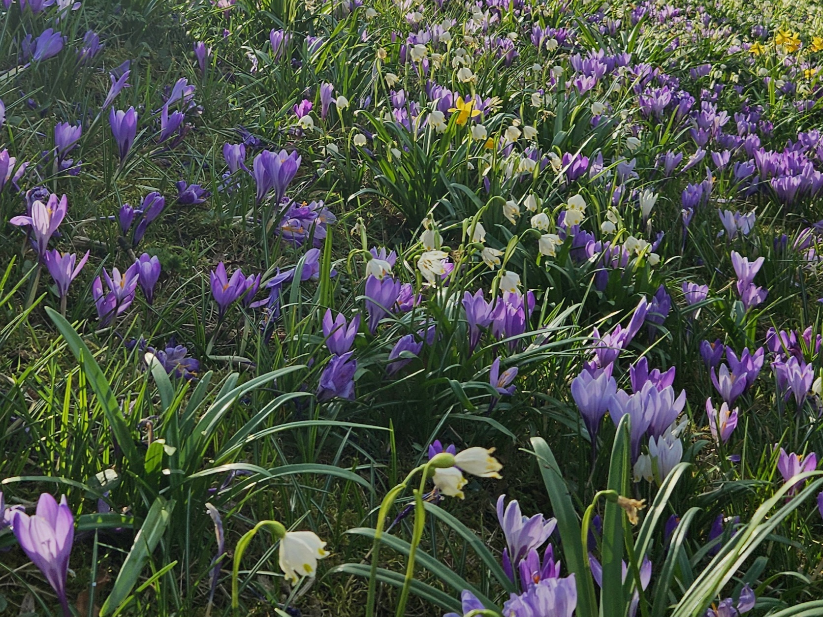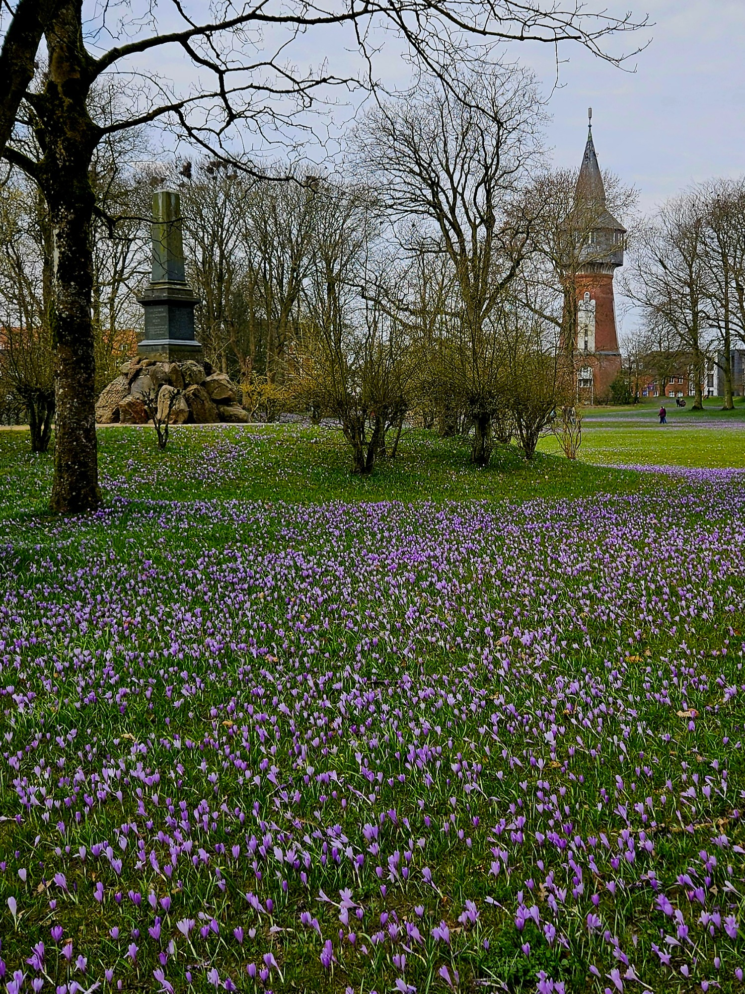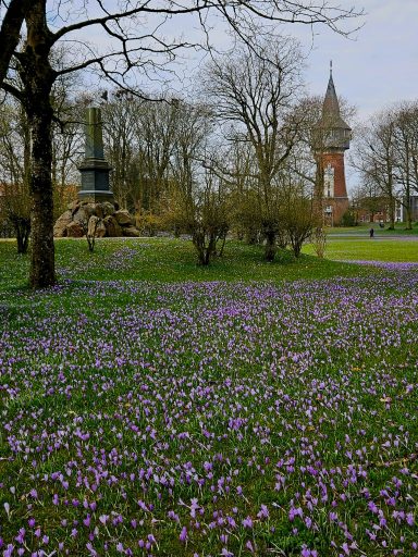 Das Frühjahr in Nordfriesland - Krokusblüte im Husumer Schlossgarten, Rückkehr der Schafe und Lämmer auf die Deiche, Sort Sol | Schwarze Sonne. Blühende Felder mit Raps von Oben.